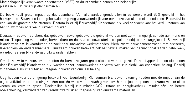MVO Bouwbedrijf Klanderman b.v.